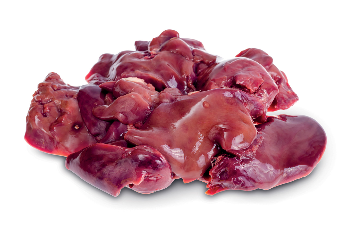 Raw fresh chicken livers isolated on white background.